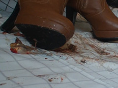 いよいよクライマックス。「嬉しいの?かかとぐりぐりそんなにうれしいの?」3匹を並べてゆっくりと潰したと思ったら「あれ?1匹いなくなっちゃったーじゃあ、もういっかーまとめて一気にぐちゃぐちゃー。」やはり柔らかいので硬いブーツでは一瞬にしてシミになってしまいます。普段は全くSではないみくちゃんですが、カメラが回ると、一気にドSモードになって、演技力抜群の女優魂をみせてくれるみくちゃんでした。